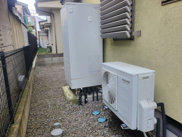臼杵市荒田 コロナ自然冷媒CO2ヒートポンプ式給湯機 ヒートポンプユニットCHP-606K→ダイキン自然冷媒CO2・家庭用ヒートポンプ給湯機 ヒートポンプユニットRQW45WHV エコキュート交換工事