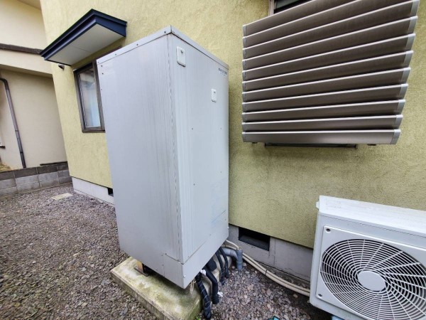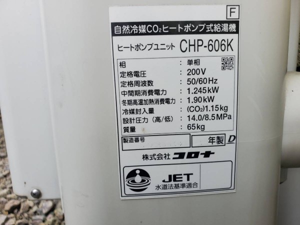 日田市有田 コロナ自然冷媒CO2ヒートポンプ給湯機 ヒートポンプユニットCHP-606K→ダイキン自然冷媒(CO2)・家庭用ヒートポンプ給湯機 ヒートポンプユニット(屋外用)RQW45WHV エコキュート交換工事
