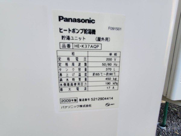 竹田市入田 パナソニックエコキュート→ダイキン自然冷媒(CO2)・家庭用ヒートポンプ給湯機 貯湯ユニットTU37WFHV エコキュート交換工事