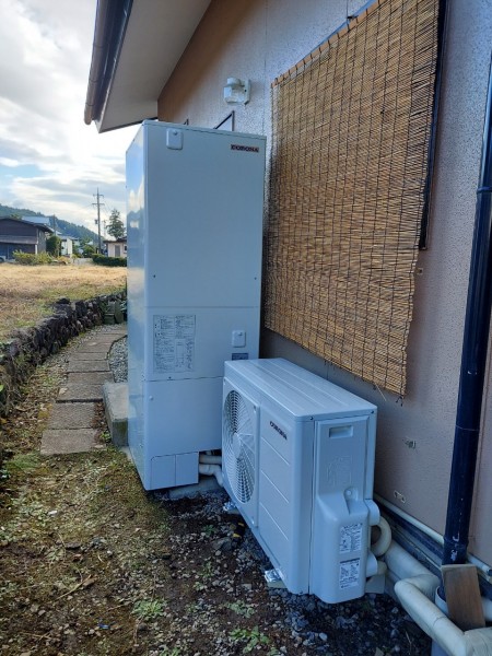 トップページ > 工事事例一覧 > 中津市金谷本町 コロナ自然冷媒CO2家庭用ヒートポンプ給湯機貯湯ユニットCTU-37AY5K、ヒートポンプユニットCHP-Y454K エコキュート交換工事