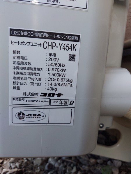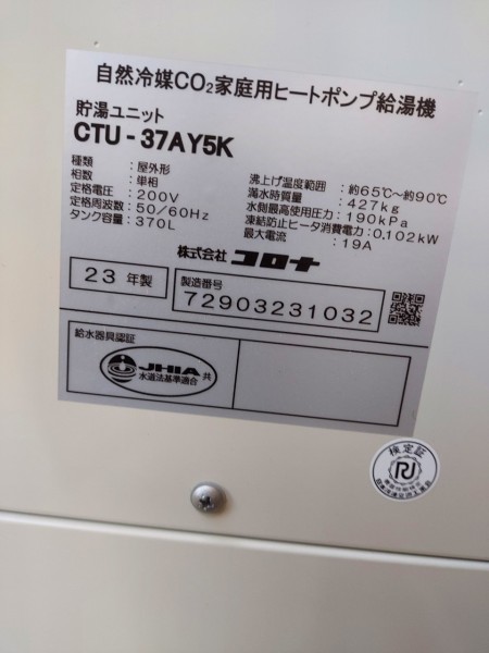 中津市金谷本町 コロナ自然冷媒CO2家庭用ヒートポンプ給湯機貯湯ユニットCTU-37AY5K、ヒートポンプユニットCHP-Y454K エコキュート交換工事|大分県のエコキュート専門交換工事店|大分エコキュート交換ショップ補助金対応可能