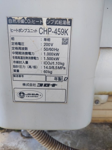 大分市明磧 コロナエコキュートCHP-459K→コロナ自然冷媒CO2家庭用ヒートポンプ給湯機ヒートポンプユニットCHP-Y454K エコキュート交換工事