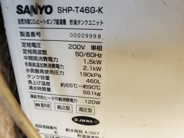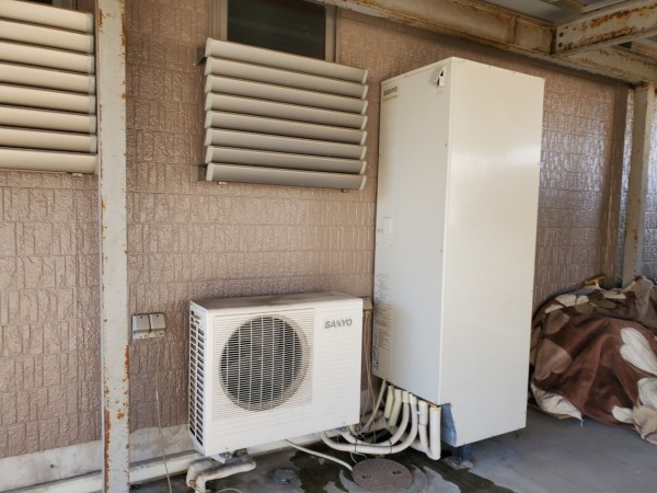 大分市大分 SANYOエコキュート→コロナ自然冷媒CO2家庭用ヒートポンプ給湯機ヒートポンプユニットCHP-Y454K エコキュート交換工事