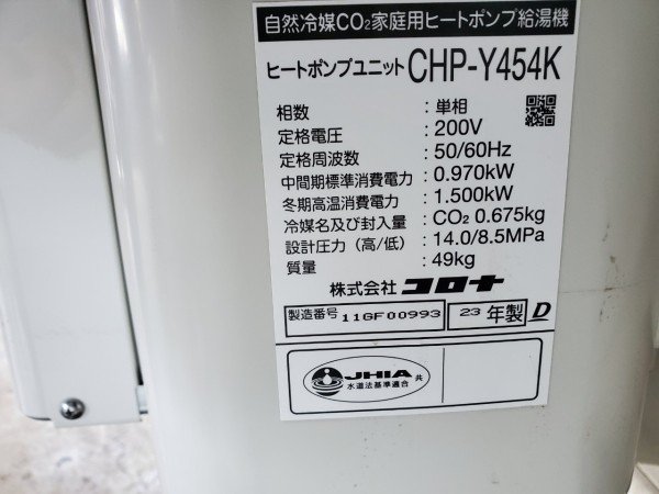 大分市大分 コロナ自然冷媒CO2家庭用ヒートポンプ給湯機ヒートポンプユニットCHP-Y454K エコキュート交換工事|大分県のエコキュート専門交換工事店|大分エコキュート交換ショップ補助金対応可能