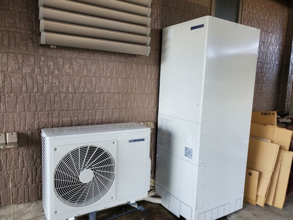 大分市大分 コロナ自然冷媒CO2家庭用ヒートポンプ給湯機ヒートポンプユニットCHP-Y454K エコキュート交換工事