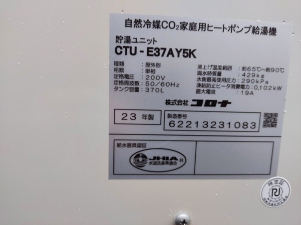 大分市大分 コロナ自然冷媒CO2家庭用ートポンプ給湯機貯湯ユニットCTU-E37AY5K エコキュート交換工事