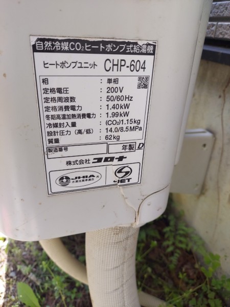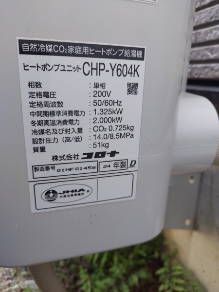 中津市金谷本町 コロナ自然冷媒CO2家庭用ヒートポンプ給湯機ヒートポンプユニットCHP-Y604K エコキュート交換工事