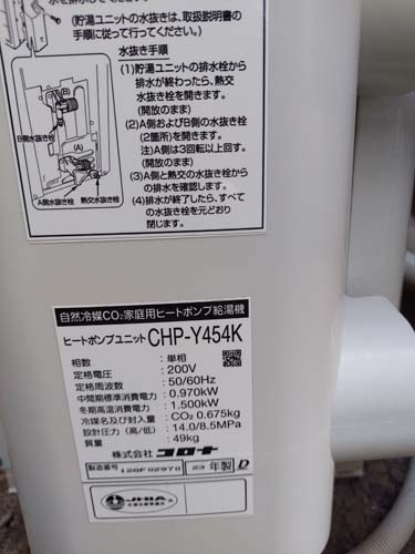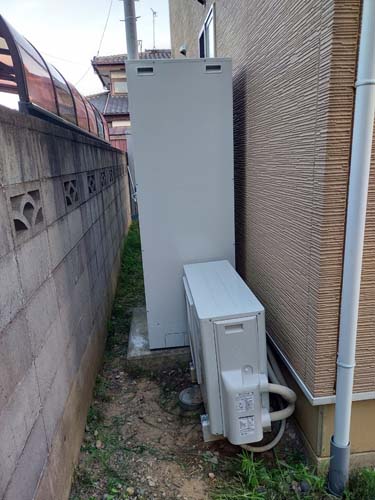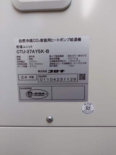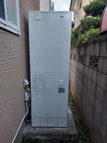 大分市大分 コロナ自然冷媒CO2家庭用ヒートポンプ給湯機 貯湯ユニットCTU-37AY5K-B、ヒートポンプユニットCHP-Y454K エコキュート交換工事