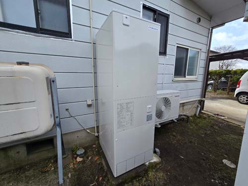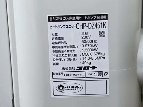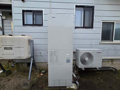 杵築市大内 コロナエコキュート→コロナ自然冷媒CO2家庭用ヒートポンプ給湯機 ヒートポンプユニットCHP-DZ451K エコキュート交換工事