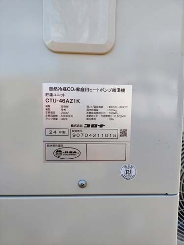 国東市国東町浜崎 コロナエコキュート→コロナ自然冷媒CO2家庭用ヒートポンプ給湯機貯湯ユニットCTU-46AZ1K エコキュート交換工事