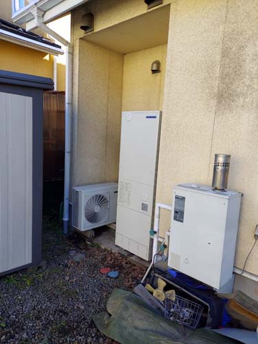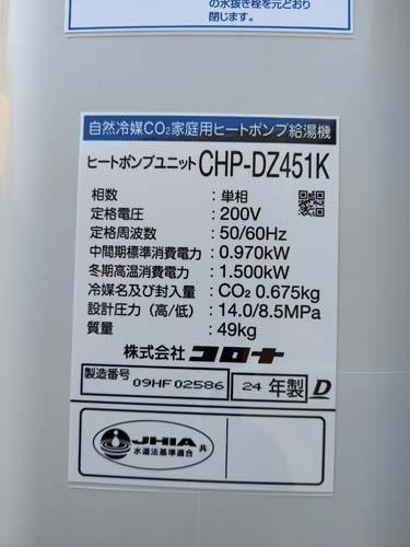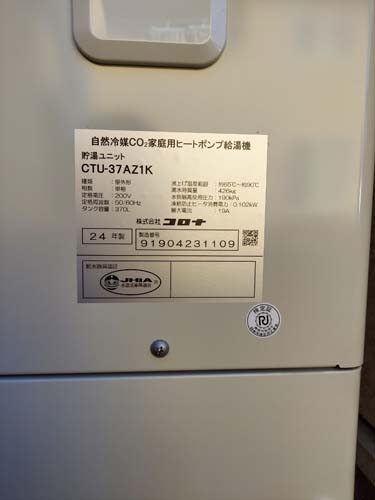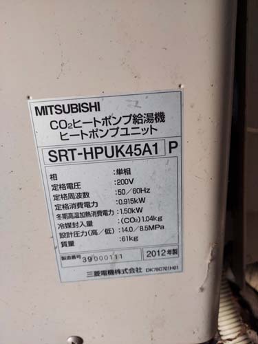 竹田市小川 三菱電機エコキュートSRT-HPUK45A1→コロナ自然冷媒CO2家庭用ヒートポンプ給湯機貯湯ユニットCTU-37AZ1K、ヒートポンプユニットCHP-DZ451K エコキュート交換工事