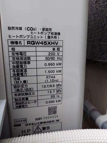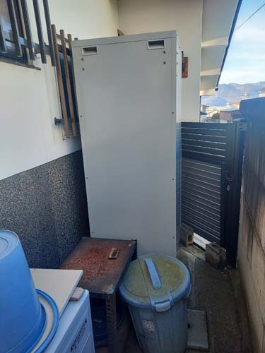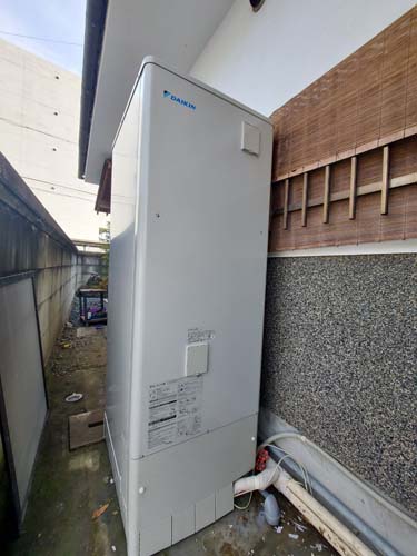 杵築市中 コロナ自然冷媒CO2家庭用ヒートポンプ給湯機 ヒートポンプユニットCHP-458K→ダイキン工業自然冷媒CO2家庭用ヒートポンプ給湯機貯湯ユニットTU37XFHV、ヒートポンプユニットRQW45XHV エコキュート交換工事