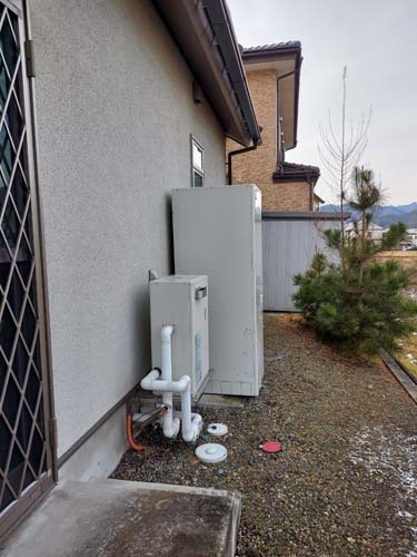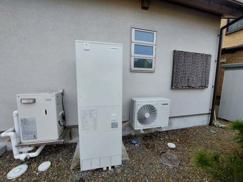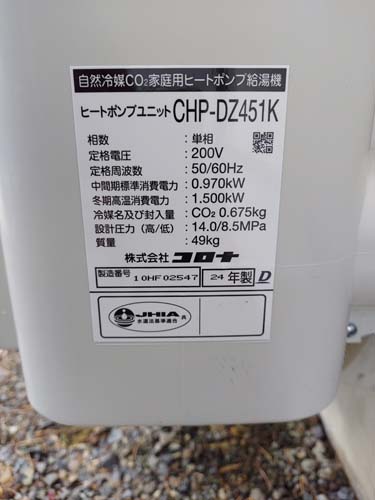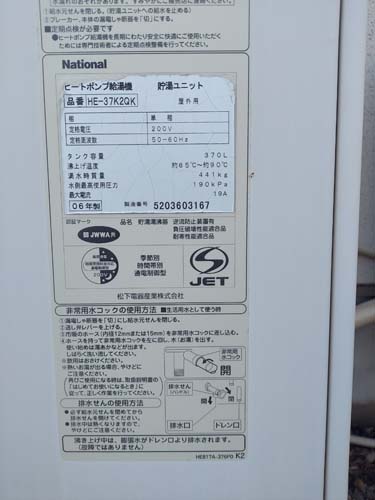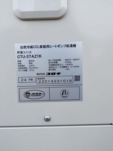 杵築市大内 Nationalヒートポンプ給湯機貯湯ユニットHE-37K2QK→コロナ自然冷媒CO2家庭用ヒートポンプ給湯機貯湯ユニットCTU-37AZ1K、ヒートポンプユニットCHP-DZ451K エコキュート交換工事