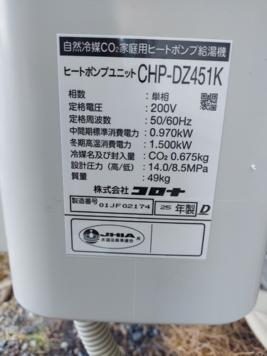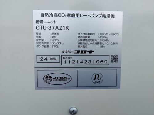トップページ > 工事事例一覧 > 大分市明磧 コロナ自然冷媒CO2家庭用ヒートポンプ給湯機貯湯ユニットCTU-37AZ1K、ヒートポンプユニットCHP-DZ451K エコキュート交換工事