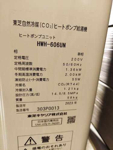 臼杵市掛町 東芝自然冷媒CO2家庭用ヒートポンプ給湯機 ヒートポンプユニットHWH-606UN→コロナ自然冷媒CO2家庭用ヒートポンプ給湯機 ヒートポンプユニットCHP-DZ451K エコキュート交換工事