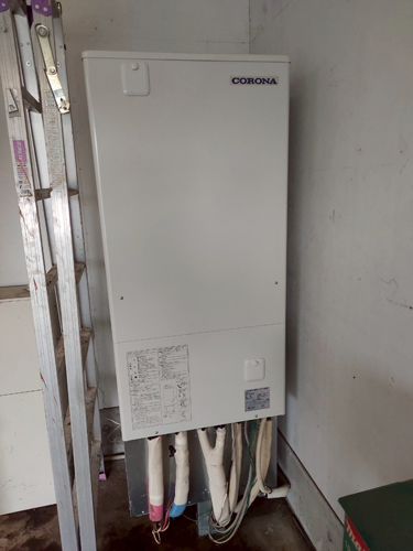 トップページ > 工事事例一覧 > 宇佐市今成 コロナ自然冷媒CO2家庭用ヒートポンプ給湯機貯湯ユニットCTU-37AZ1K、ヒートポンプユニットCHP-DZ451K エコキュート交換工事